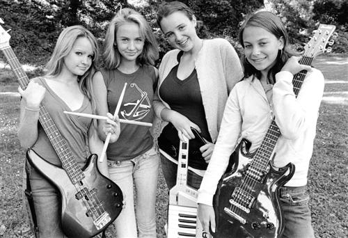 Curiously Strong gelled just three years ago at Live Oak School, but the all-girl rock band has already performed at the JCC, Great American Music Hall, and Yoshi's. They enjoy listening to everything from Jimi Hendrix to Jimmy Eat World ("as long as the song actually has a point to get across," says Clare Wlodarczyk, 14). Their repertoire ranges from the '60s hit "These Boots Are Made for Walkin'" to current faves like Fastball's "The Way." How'd they get hooked on playing? "You get an energy inside you that is so inspiring," says Brenna Stanton, 14. Thirteen-year-old singer-guitarist Alissa Goldberg adds, "I like hearing what's inside my head out of my head, so others can hear it, too." Olivia Evans, also 13, plans to play an instrument "always--like when grownups come to parties and bring their guitar or something.... Maybe I should switch from piano and drums--I don't want to be carrying them to parties!" CURIOUSLY STRONG, left to right: Clare Wlodarczyk, bass guitar, vocals; Olivia Evans, keyboard, drums, vocals; Brenna Stanton, keyboard, vocals; Alissa Goldberg, guitar, vocals.