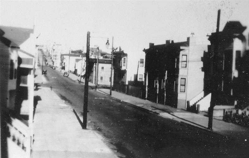 In 1937, when this photo was taken, Jersey Street (looking east from Noe) had so little traffic kids could skateboard and play ball to their heart’s content. Photos courtesy Fred Lossman